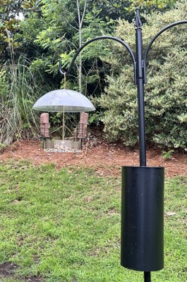 Birds Choice 5pc Erva 2 Arm Complete Bird Feeder Pole Set with Squirrel Baffle: Weather-Resistant, Steel Construction