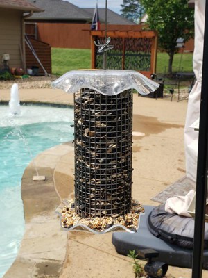 Very disappointed. The feeder is only held together by two pinch-to-grip clips on a stainless steel rod. Pressure on the clear plastic tray causes the clips to slip and the feeder to fall apart. A crow looking for corn (not the feeder's black sunflower seeds) landed on the tray a couple of time and knocked the whole thing apart (bye, bye sunflower seeds). Very poor design.