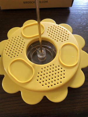 [This review was collected as part of a promotion.] This is such a pretty butterfly feeder! It is bright yellow and looks so nice hanging in my garden. The concept is similar to a hummingbird feeder in that you fill the feeder with liquid butterfly food purchased separately) and wait for them to come. They land on top of the feeder and drink through the tiny holes in the top. There is a small reservoir in the top center that you fill with water to ward off ants getting all over it. The bottom is clear so you can easily see when to refill. It is a made with good quality plastic that seems it would last season to season. Such a pretty addition to our outdoor space that brings butterflies visiting!