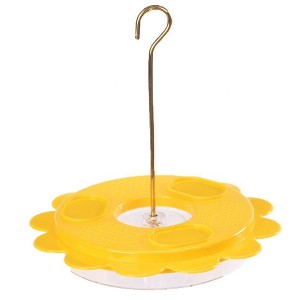 [This review was collected as part of a promotion.] This is such a bright cheerful addition to my flower garden. It is lightweight, easy to assemble and fill and is easy to rinse clean before refilling. The hanger hoop fits over a shepherds hook and not so open that it falls off in the wind. I have noticed several butterflies in the garden since adding this where I usually see very few all summer.