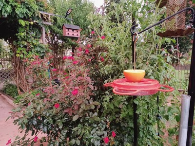 - • Built with three ways to feed orioles, nectar, oranges, and jelly