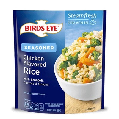 - One 10 oz bag of Birds Eye Steamfresh Seasoned Chicken Flavored Rice with Broccoli, Carrots and Onions, Frozen Side