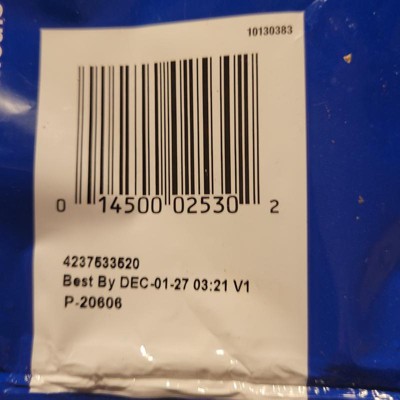 We always buy the 60oz pkg and can split it into 2 meals. This time it only had 1 cheese pkg. We have never had any problems before. Best by is Dec 01-27 3:21 V1 P-20606. #4237533520