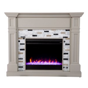 Sold as a set of multiple boxes. Warm up your space with contemporary design when you bring home this color changing electric fireplace. Classic woodwork creates a cozy fireplace look, while the sleek marble surround adds a clean, modern feel to your living room or dining area. Realistic faux fire logs and color changing flames reflect off the faux crystal fill, working with or without heat for year-round enjoyment. Curl up and unwind in cozy comfort when you add this marble fireplace to your contemporary decor.