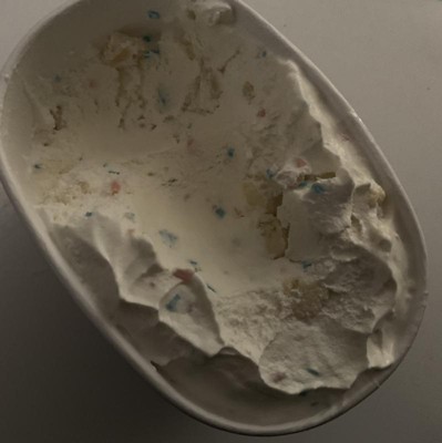 - Vanilla frosting-flavored ice cream with cake pieces and candy sprinkles