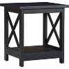 If you need a nice side table to place next to your favorite recliner, the Serta Bismarck Side Table is a great option. This end table has a large space for storage on the bottom shelf and X shaped lattice on the sides that add to its visual appeal. Designed in the modern farmhouse style, this accent table can be incorporated into any room design and its modern black color allows for placement in any color of room. Despite having a large space for storage, this side table is constructed to have a small footprint, making it a good option for smaller rooms. Combine with the complementary Bismarck coffee table and your favorite Serta sofa for a comfortable, complete living room set. Due to natural materials, color variation and unique wood details are to be expected and celebrated.