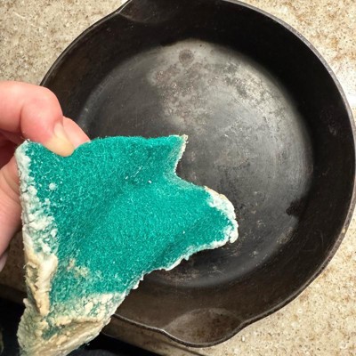 [This review was collected as part of a promotion.] I bought these for general cleaning and found myself using them on a gnarly project — stripping down some old cast iron. I mixed up some baking soda paste and went to work on a 100+ year old pan using one of these sponges. It was a lot of scrubbing, soaking and heavy pressure but the sponge held up really well. The sponges are firm and gritty for tough jobs. You can fold them or cut as needed. I love having a big pack so I don’t feel bad tossing one if it gets too nasty. Solid value and performance. I try to keep a pack around for dishes and bigger deep-cleaning projects.