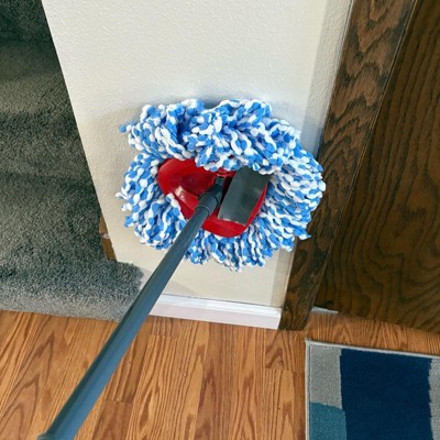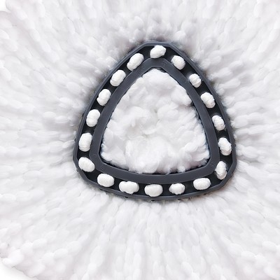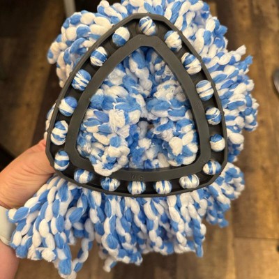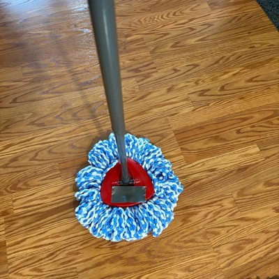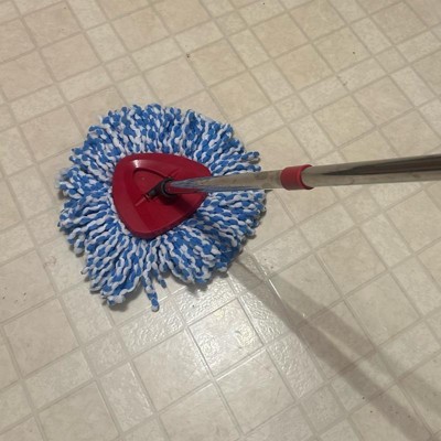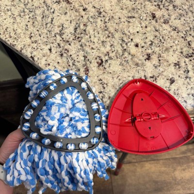 - Washable spin mop head features an inner triangular rim of 4'' and an outer triangular rim of 6'' in diameter. The rounded triangle shape effectively removes grease and dirt from surfaces without streaking & easily reaches under furniture & into corners