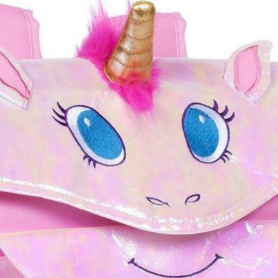 - Product Details: Backpack weighs 2lbs, 1 kilo. Shoulder strap total length is 28 inches (Large size). Shoulder strap total length is 24 inches (Medium size). Made of durable 600-denier* polyester. Water resistant. Sparkalicious glitter is flake resistant