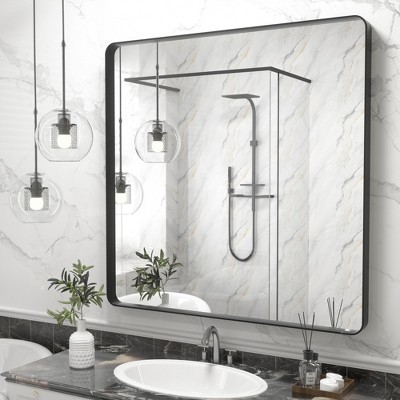 Black 36 Inch Metal Round Bathroom Mirror