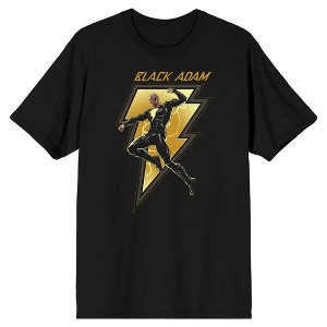 - GRAPHIC TEE: Black Adam leaps in front of a large yellow lightning bolt in the graphic design on this tee while yellow letters above the image spell out his name. This t-shirt makes a great gift for DC fans.
