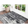 A: The rug features a modern abstract design in black and gray, adding visual interest to your space.