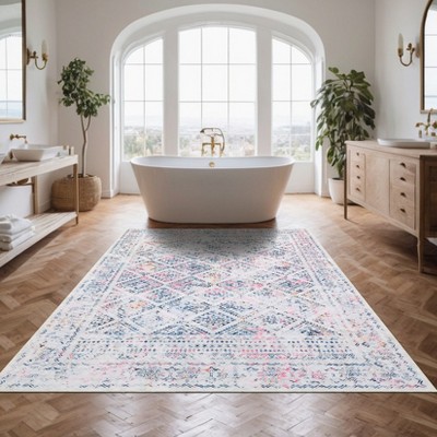 Black Area Rug 5x7 Modern Floral Washable Rugs Ultra-Thin Non Slip Living Room Rug Low Pile Boho Floral Carpet Bedroom Rugs for Dining Room Playroom
