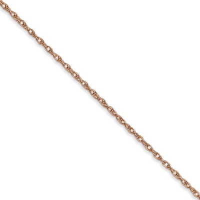 Classic appeal with a modern design, this solid-link cable rope chain created from polished 14k rose gold is finished with a spring-ring clasp and perfect for displaying lightweight charms or pendants. This delicate necklace chain is 1.15mm in width and available in a variety of lengths to meet your individual fashion needs. Additional features include: polished 14k rose gold design; solid link, 1.15mm width, delicate cable rope style; closes with a spring ring clasp; average weight for the 18-inch length is 1.43 grams.