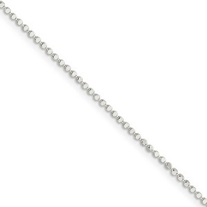Polished square beads gleam along the length of this sterling silver chain necklace that measures 1.1mm in width. It features a solid link design and closes with a spring ring clasp. Additional features include: polished sterling silver design; solid link, 1.1mm width, square bead style; closes with a spring ring clasp; average weight for the 18-inch length is 2.72 grams.