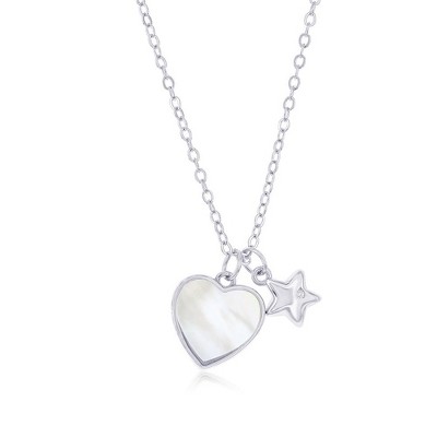 - Unique Features - Opposites do attract! Like the sparkle of the stars in the dark night sky, this black and white diamond double heart necklace matches that beauty. It is designed from tarnish resistant rhodium plated sterling silver and prong set with H-I natural white and black heat-treated, I2-I3 clarity diamonds totaling 1/20 carat. The small pendant is approximately 9mm (3/8 inch) in width by 15mm (9/16 inch) in length, which includes the bail. The 1mm cable ...See description for more