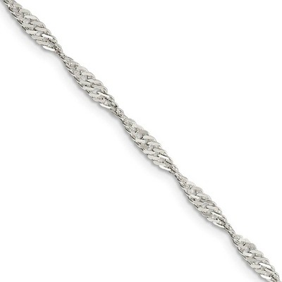 - Unique Features - Known for its unique twisted design this 1.4mm width classic Singapore chain features a solid link construction with a tarnish-resistant rhodium-plated polished finish that catches the light with every movement. It is fashioned from sterling silver and closes with a spring-ring clasp.