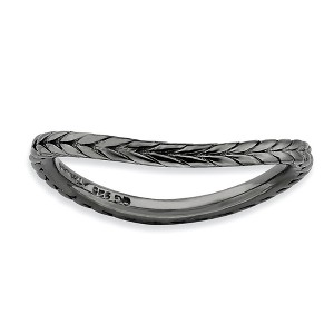 • Unique Features - Contemporary geometric style! Create a unique stacked design with curved bands of different colors, patterns and widths. This thin 1. Mm band fashioned from sterling silver features a polished black ruthenium-plated finish, a gentle wave shape and a wheat pattern. Wear it alone or stack with other curved bands only.