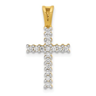 • Unique Features - Celebrate and honor all special occasions with jewelry of religious significance! Our collection of spiritually inspired designs that show faith, hope and devotion are perfect for commemorating life's milestones. This small Latin cross pendant created in rhodium-plated 14k white gold features 16 round diamonds that are I2 in clarity and I-J in color. It is available in 2 sizes, 10 x 20mm (3/8 x 3/4 inch, 1/6 carat) or 12 x 23mm (7/16 x 7/8 inch, ...See description for more