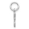 Create a sparkling initial impression with this satin finished 14k white gold charm featuring diamond cut accents that twinkle with every movement. Each letter measures approximately 10mm (3/8 Inch) in length and dangles from a classic jump ring that will fit up to a 3mm width chain. Made in the U.S.A. Chain not included. Additional features include: solid 14k white gold design; satin finish accented with diamond cut details; approximate length 10mm; average weight is 0.41 grams.