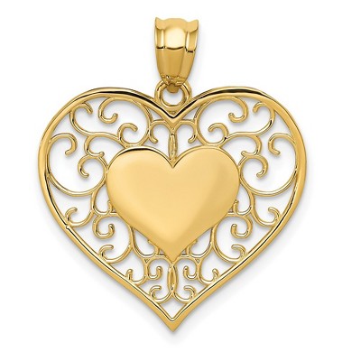 Black Bow Jewelry 14k Yellow Gold Diamond Cut Lattice Heart Pendant, 10mm - 1 of 4