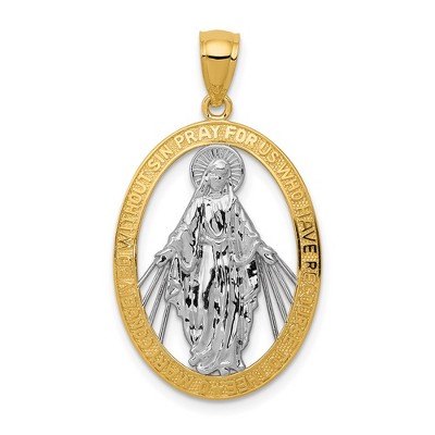 Product Name: Black Bow Jewelry 14k Yellow Gold, Round Miraculous Medal Pendant