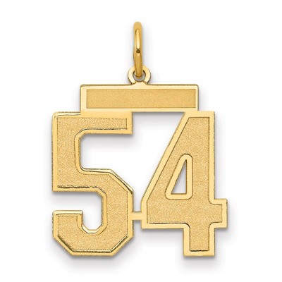• Unique Features - Celebrate your favorite sports player, lucky number or milestone date in your life with a prominent 14k yellow gold charm. Each satin and diamond cut number is approximately 12mm (7/16 Inch) in length, which is finished with a 3mm top bar and tapered bail giving it an overall length of approximately 26mm (1 Inch). Made in the U.S.A. Chain not included.