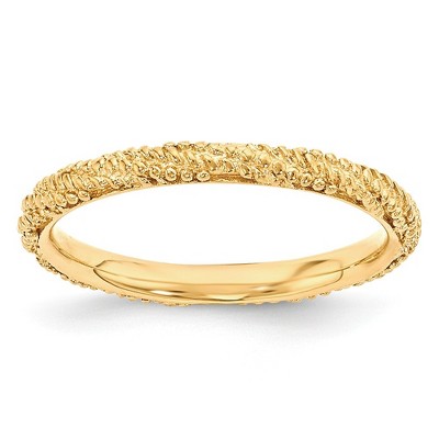 Make it simple and stylish with stackable bands of different textures, finishes, widths and colors! This rose gold-tone plated sterling silver band features a textured design with a high polished finish that measures 2.5mm wide. Guaranteed to fit together perfectly with all of the mix and match Stackable Expressions rings. Additional features include: rose gold tone plated sterling silver; polished finish, textured design; approximate band width 2.25mm; average item weight is 1.84 grams.