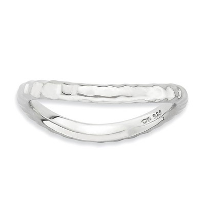 Make it simple and stylish with bands of different textures, finishes, widths and colors! This black ruthenium-plated sterling silver band features a hammered design with a high polished finish that measures 2.5mm wide. Guaranteed to fit together perfectly with all of the mix and match Stackable Expressions rings. Additional features include: black ruthenium-plated sterling silver design; 2.25mm high polished band; wear it alone or stacked in a collection; average metal weight is 2.45 grams.