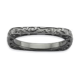 • Unique Features - Contemporary geometric style! This 2.5mm square band fashioned from sterling silver features a polished black ruthenium-plated finish, a textured grooved design and open filigree sides. Guaranteed to fit together perfectly with all of the mix and match Stackable Expressions rings.