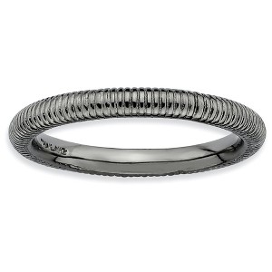 • Unique Features - Make it simple and stylish with bands of different textures, finishes, widths and colors! This black ruthenium-plated sterling silver band features a thin grooved design with a high polished finish that measures 2.5mm wide. Guaranteed to fit together perfectly with all of the mix and match Stackable Expressions rings.