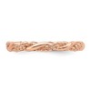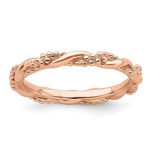 Make it simple and stylish with bands of different textures, finishes, widths and colors! This stackable ring created from 14k rose gold-plated sterling sliver features a polished and beaded twist design. The approximate band width is 2.5mm. Guaranteed to fit together perfectly with all of the mix and match Stackable Expressions rings. Additional features include: 14k rose gold-plated sterling sliver; features a polished & beaded twist design; approximate band width is 2.25mm; average item weight for the size 7 is 2.4 grams.