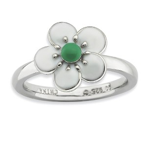 • Unique Features - Vibrant and colorful, a 12mm white and green enameled hawthorn outlined in sterling silver sits atop a 2.5mm polished band finished with tarnish resistant rhodium plating. Guaranteed to fit together perfectly with all of the mix and match Stackable Expressions rings.