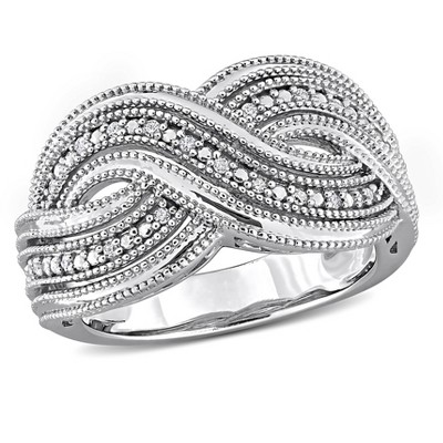 Unique Features - You cannot go wrong by adding a diamond ring to any stackable combination. This polished 2. Mm width band fashioned from rhodium-plated sterling silver features a heart pattern design prong set with genuine black and white diamonds. The white diamonds are H-I in color, I3 in clarity and the total diamond weight based on a standard size 7 is 0.2 of a carat. Guaranteed to fit together perfectly with all of the mix and match Stackable Expressions rings.