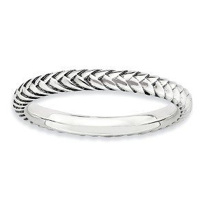 Make it simple and stylish with bands of different textures, finished, widths and colors! This sterling silver band features a wheat design with an antiqued finish that measures 2. Mm wide. Guaranteed to fit together perfectly with all of the mix and match Stackable Expressions rings. Additional features include: 2.5mm antiqued sterling silver band; textured wheat design; stack with other bands or use a spacer; average metal weight is 2.54 grams.