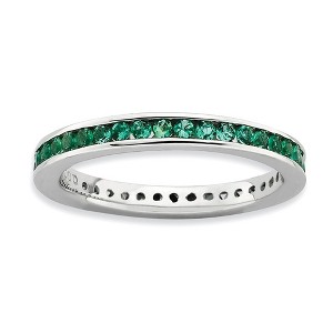 • Unique Features - Timeless style! Vibrant created emeralds are channel set in rhodium plated sterling silver all the way around this 2. Mm eternity synthetic gemstone band. Guaranteed to fit together perfectly with all of the mix and match Stackable Expressions rings.