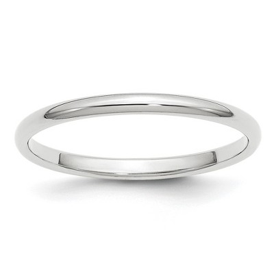 Sleek and simple with a classic half round design created from polished rhodium-plated 14k white gold. This standard fit band is 1.15mm in thickness (lightweight) and available in multiple width options, 2mm to 6mm. Suitable for engraving. Additional features include: created from polished rhodium-plated 14k white gold; standard fit, lightweight (1.15mm), half round style; available in width sizes 2mm to 6mm; suitable for engraving.