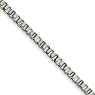 Known for its strength and flexibility, this gleaming box chain features a simple design that is less likely to kink and a polished finish that catches the light with every movement. It measures 2mm in width and is fashioned from 316L stainless steel, a contemporary metal that will not rust or tarnish. Closes with a fancy lobster clasp. Additional features include: crafted with stainless steel; 2 mm in width; box style chain; closes with a lobster claw clasp.