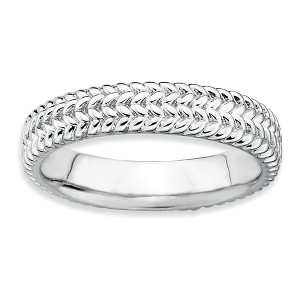 • Unique Features - Make it simple and stylish with bands of different textures, finishes, widths and colors! This rhodium plated sterling silver band features a wheat design with a high polished finish that measures 4. Mm wide. Guaranteed to fit together perfectly with all of the mix and match Stackable Expressions rings.