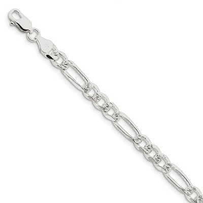 Round and oval links made of polished sterling silver interlock in a reoccurring three and one pattern that closes with a lobster claw clasp. The easy elegance of a flat Figaro chain looks great with dress or casual wear and the 4.5mm width is perfect on its own or paired with other chains for a layered look. Made in Italy. Additional features include: polished sterling silver design; flat link, figaro style, 4.5mm width; closes with a lobster claw clasp; average weight for the 8-inch length is 4.47 grams.