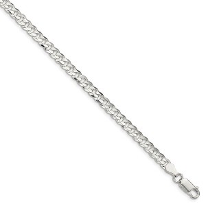 An array of polished sterling silver curb links join together to create the sleek style for this 4.5mm width necklace chain that closes with a lobster-claw clasp. It features a solid link construction with a concaved center and beveled edges. Additional features include: polished sterling silver design; solid link, 4.5mm width, concaved beveled style; closes with a lobster claw clasp; average weight for the 18-inch length is 9.98 grams.