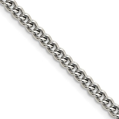 - Unique Features - Curving geometric lines combined with the silver gray tone as well as the inertness of stainless steel make this polished chain an excellent choice for everyday wear. The round curb links measure 4mm in width and close with a fancy lobster clasp.