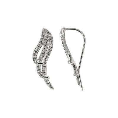 Change up your look with these trendy sterling silver and cubic zirconia ear climbers designed to curve up along the earlobe. This pair features prong set cubic zirconia gemstones, milgrain edges, an upward ear wire and is approximately 5mm (3/16 inch) in width by 27mm (1 1/16 inch) in length. Additional features include: solid sterling silver design; 22 prong set cubic zirconia stones; approximate size 5 x 27mm (3/16 x 1 1/16 inch); average weight for the pair is 4.3 grams.