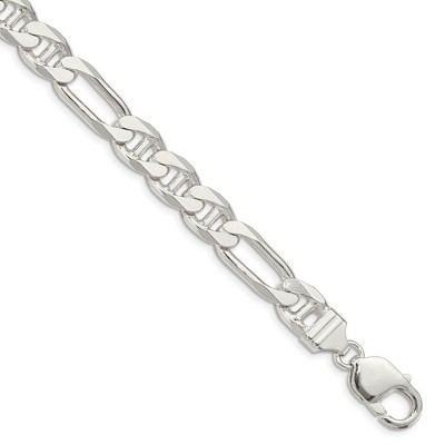 Round and oval links made of tarnish-resistant, rhodium-plated sterling silver interlock in a reoccurring three and one pattern that closes with a lobster claw clasp. The easy elegance of a classic Figaro chain looks great with dress or casual wear and the 6.5mm width, 8-inch long size provides versatility for both men and women. Additional features include: rhodium-plated sterling silver design; solid link, 6.5mm width, classic figaro style; closes with a lobster claw clasp; average item weight is 13.14 grams.