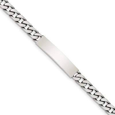 Identify yourself, remember a special person or even display a special message with this polished ID bracelet. It is crafted from solid sterling silver and features a 34mm long x 7mm width ID plate. It is, of course, suitable for engraving. The 7mm width anchor chain secures with a lobster claw clasp. Additional features include: solid sterling silver design; features a 34 x 7mm id plate; suitable for engraving; average weight for the 7-inch length is 12.39 grams.
