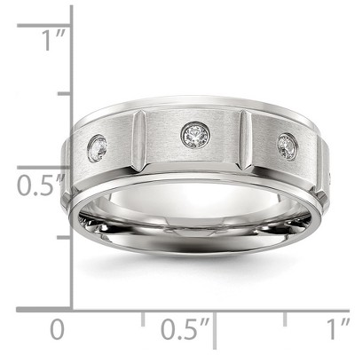 • Unique Features - Classic elegance featuring a brushed flat center with 9 round cubic zirconia gemstones channel set in titanium. It is approximately 7mm in width, has a polished standard fit shank and is suitable for engraving.