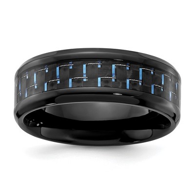 A tried and true favorite style featuring a flat-brushed center with polished ridged and beveled edges created from black zirconium, a metal element that is similar to titanium. Zirconium is lightweight, shatterproof, scratch-resistant, and the color will never fade. This 9mm width, standard fit band is also hypoallergenic and suitable for engraving. Available in whole and half sizes 8-13. Wide bands fit tighter on the finger, so you might want to consider moving up a size for a more comfortable fit. Additional features include: crafted in black zirconium; standard fit, brushed & polished finish; approximate width 9mm; average item weight is 7.76 grams.