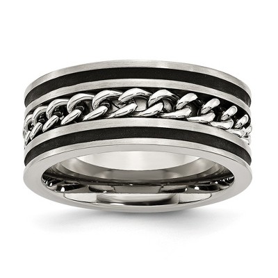 Unique Features - Refine your style with a distinctive ring crafted from titanium that mirrors your unique personality. This 9mm width flat band features a carved scroll design with a brushed and polished finish, rounded edges, and a standard fit shank. Suitable for engraving. Wide bands fit tighter on the finger, so you might want to consider moving up a size for a more comfortable fit.