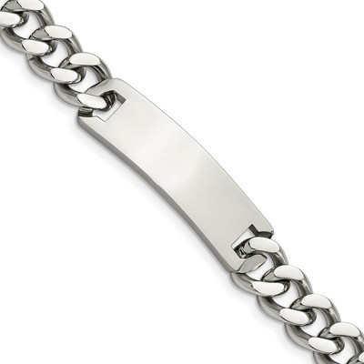 Unique Features - Identify yourself, remember a special person or display a meaningful message with this men's adjustable length ID bracelet. It is crafted from black-plated stainless steel with black leather and features a 42mm (1 5/8 inch) long by 14mm (9/16 inch) wide brushed ID plate. It is, of course, suitable for engraving. The textured leather strap is approximately 11mm (7/16 inch) in width and the 7.75 inch length includes the magnetic clasp and 1/2 inch removable extender link.