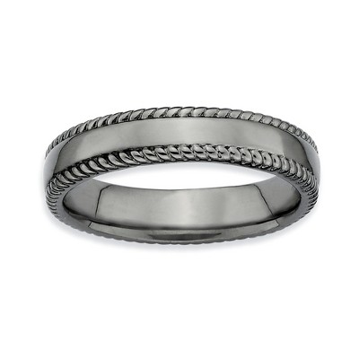 Unique Features - Make it simple and stylish with bands of different textures, finished, widths and colors! This black ruthenium-plated sterling silver band features a patterned design with a high polished finish that measures 4.5mm wide. Guaranteed to fit together perfectly with all of the mix and match Stackable Expressions rings.